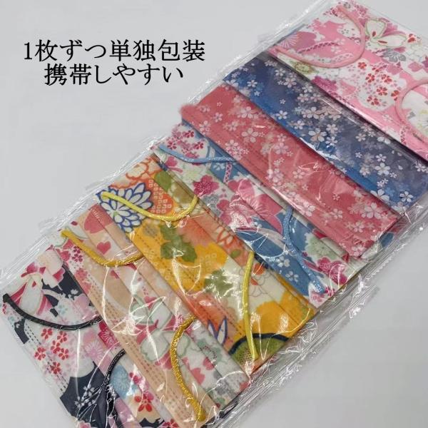 不織布マスク和風 10枚セット 1枚ずつ単独包装携帯しやすい 3層フィルターウィルス予防 使い捨て用 和服や浴衣に似合う全7柄 オシャレマスク 男女通用サイズ