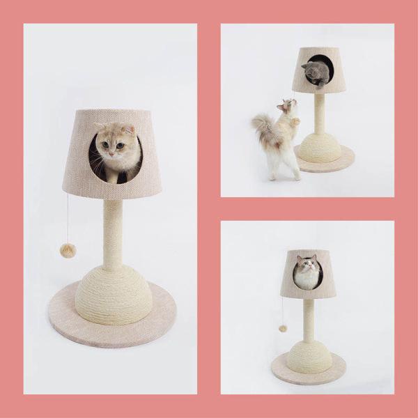 キャットタワー 電気スタンド型キャットタワー 猫用品 アイボリーとグレー2色 猫つめどき 隠れハウス 毛ケア おもちゃ付き