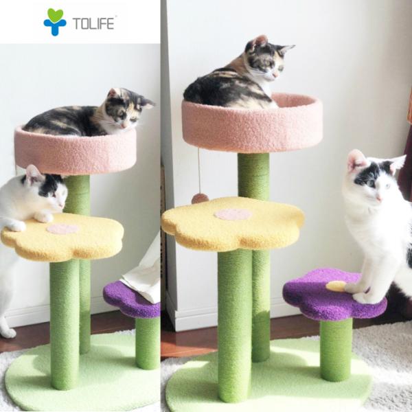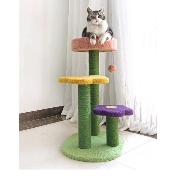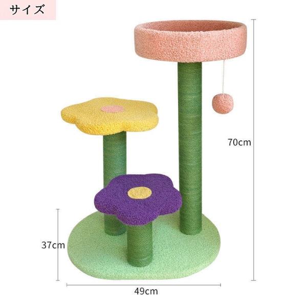 花形キャットタワー 猫タワー PET25 花形の踏み台が可愛くてもこもこ 丸いベッド 爪どき用の麻ロープできた柱が家具を守る 送料無料
