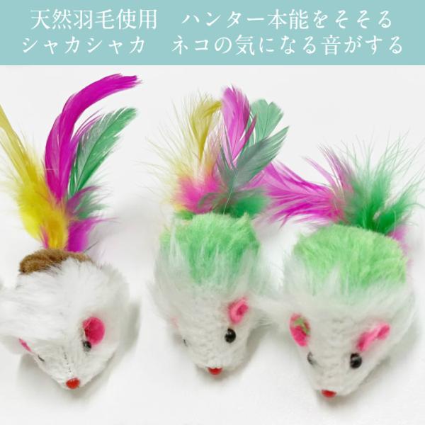 ネコちゃんのネズミおもちゃ ベビーマウス10匹1セット ネコが良く遊ぶミニサイズ 天然羽毛使用ハンター本能そそる カシャカシャ猫の気になる音がします