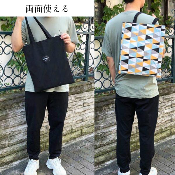 トートバッグ 2WAY 両面使える エコバッグ 買い物バッグ Eco bag ジオメトリ三角柄 メンズバッグ レディースバッグ 書類 小物