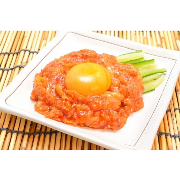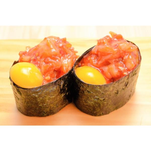 ピリ辛ユッケ風えんがわ。脂がのってプリプリ新鮮!