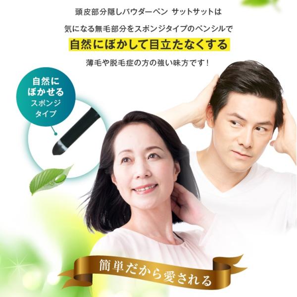 人目が気になって仕方ない無毛、薄毛部分をサットサットはスポンジタイプのペン先で茶色にぼかしながら自然に隠します。
