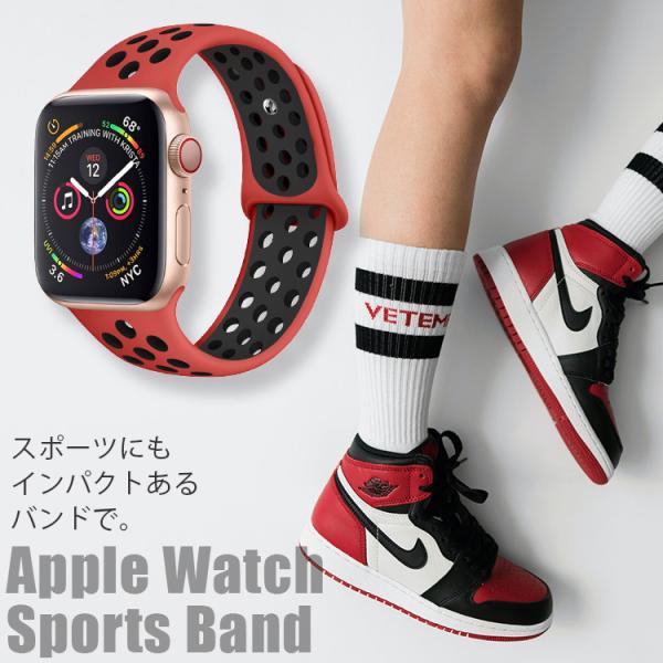 アップルウォッチ スポーツ バンド スポーツタイプ ベルト シリコン シンプル apple watch series5 送料無料 バンド交換 メンズ レディース かっこいい おしゃれ