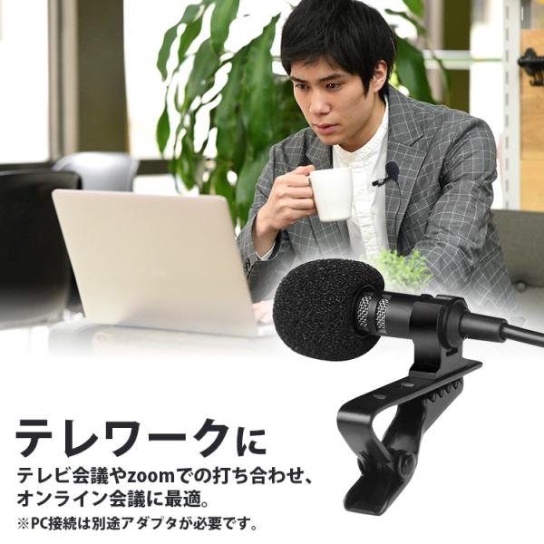 コンデンサーマイク ピンマイク 高音質 ミニマイク クリップ iPhone iPad Android 対応 3.5mm 録音 タイピンマイク マイクロフォン ミニクリップ付き