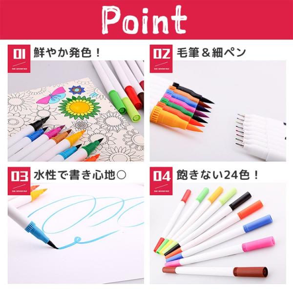 水彩筆ペン セット 24色 筆ペン 水性マーカー 細ペン デュアルタイプ ツインヘッド カラーペン 絵筆