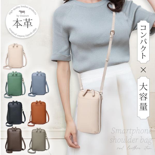 爆買い 本革スマホショルダー(スマホポーチ・縦型ラウンドファスナー) レディース 女性 おしゃれ コンパクト かばん 名入れ無