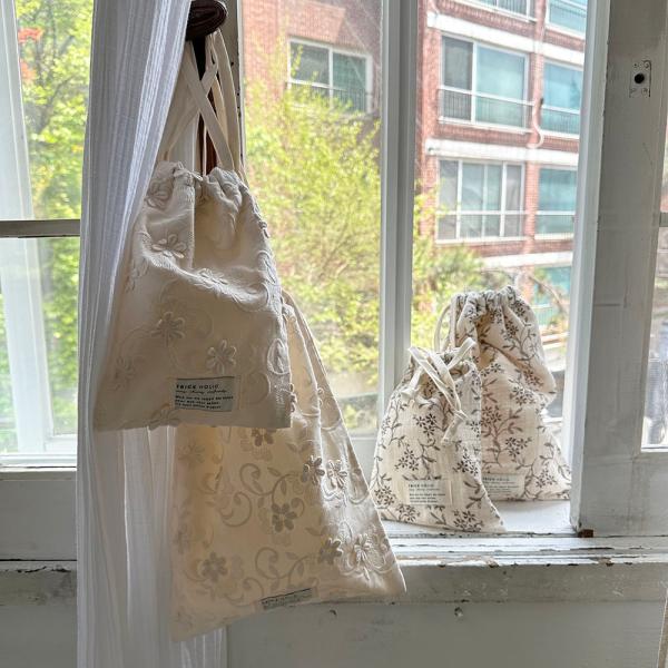 【1点までネコポス可】cotton pouch garden flower (大+小) / vintage flower (大+小) 巾着 ポーチ コットン パウチ TRICK HOLIC