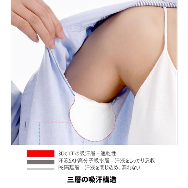 脇の下に貼るだけで、汗を吸収し、衣服にシミをつけることなく清潔さを保ちます。