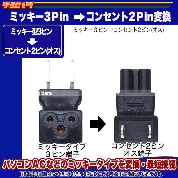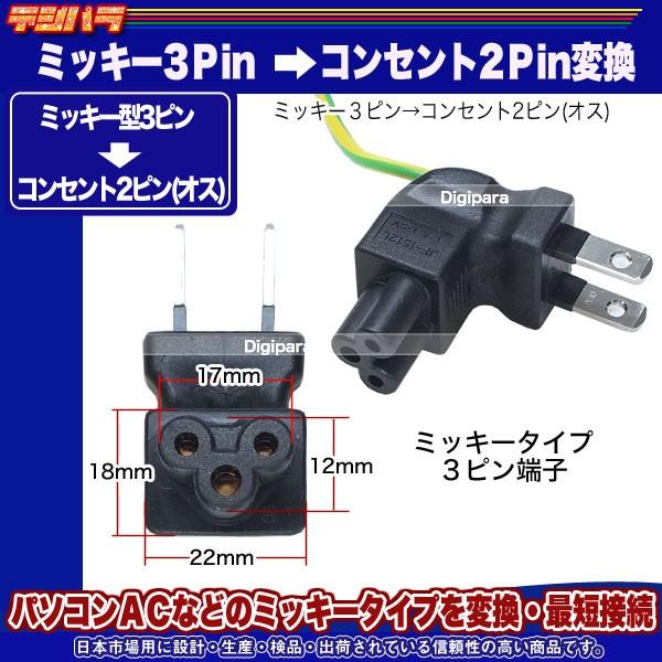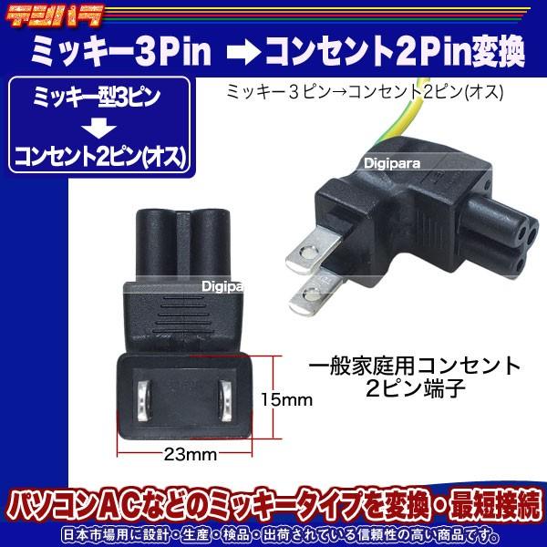 ミッキー型3ピン→コンセント2ピン 直角変換アダプタ
