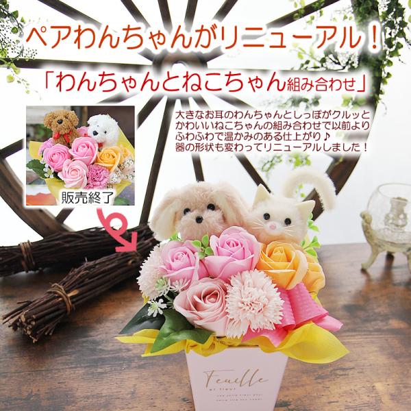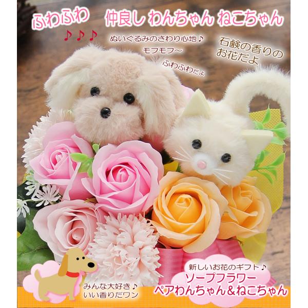 ソープフラワー 花 ギフト プレゼント ペアわんちゃん ねこちゃん アレンジメント シャボンフラワー 犬 猫 誕生日