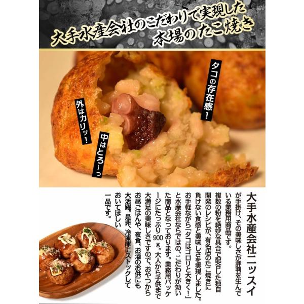 さらに水産メーカーらしく、枕崎鰹節・日高産昆布など、出汁の効いた生地の旨さに、大きめのタコが存在感のあるたこ焼きに仕上がっています。