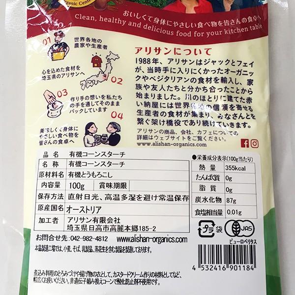 アリサン 有機コーンスターチ 100g×2個セット 有機JAS 送料無料 ネコポス
