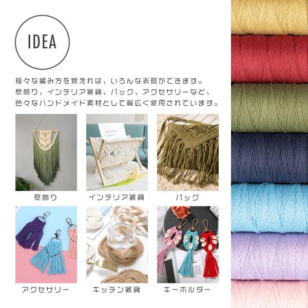 マクラメ 糸 ロープ コード 紐 200m 直径3mm 3巻セット 10種有