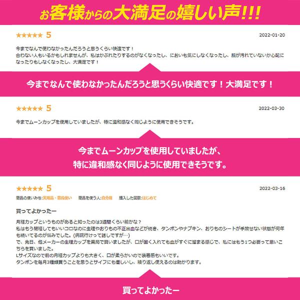 また、市販のナプキンは1枚約5ml、タンポンは1本約6mlの吸収量なので、月経カップがあれば多い日でも安心です。