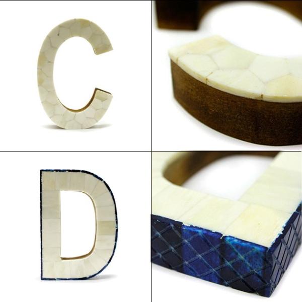 [A-N] オブジェ アルファベット イニシャル ディスプレイ パーツ 木製 骨 置物 英語 数字 動物 民芸品 切り文字