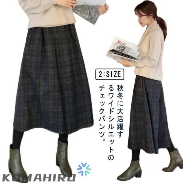 ガウチョパンツ レディース チェックパンツ 大きいサイズ 七分丈 スカーチョ 秋冬 チェック柄 スカンツ ワイドパンツ フレアパンツ ゆったり 大きサ
