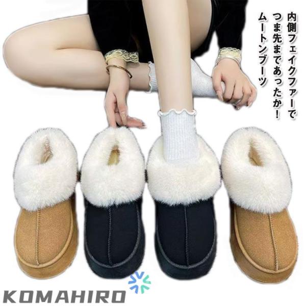 レディース スリッポン 防寒 厚底 ムートン スノーブーツ 疲れない ムートンブーツ 保温 厚底 5cmヒール 軽量 ファー ボア 防滑 もこもこ あ