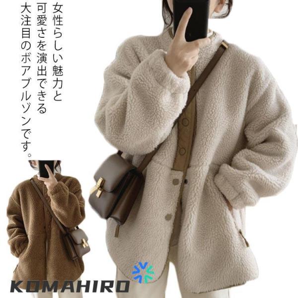 ボアジャケット レディース 秋冬 カジュアル アウター もこもこ 切り替え ムートンコート 前開き 長袖 ゆったり きれいめ 可愛い カジュアル 厚手