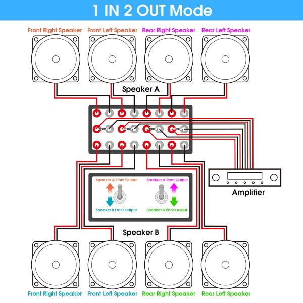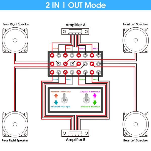 パッシブ 2-way 4CH アンプ カー スピーカー スイッチャー ボックス ステレオ オーディオ スプリッター オーディオセレクター スピーカー セレクター