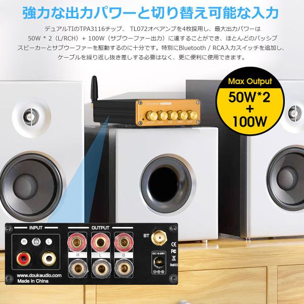 オーディオ入力:Bluetooth 5.0 /ステレオL/R RCA