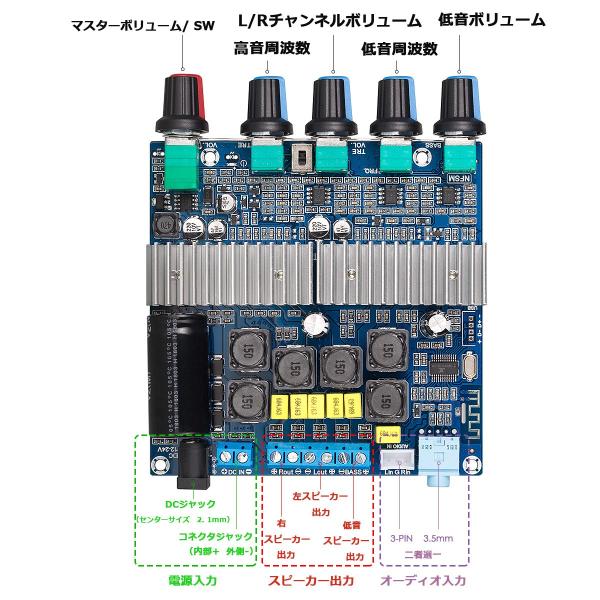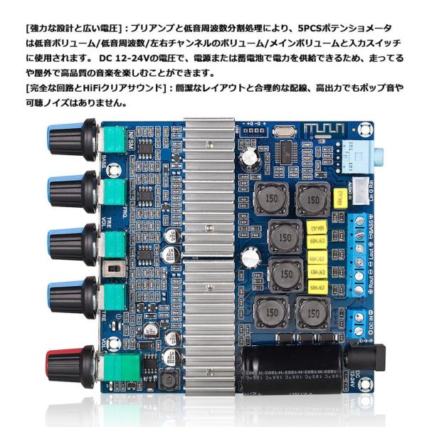 HiFi 2.1チャンネル Bluetooth 5.0 パワーアンプ ボード + ケース ステレオ サブウーファー アンプ