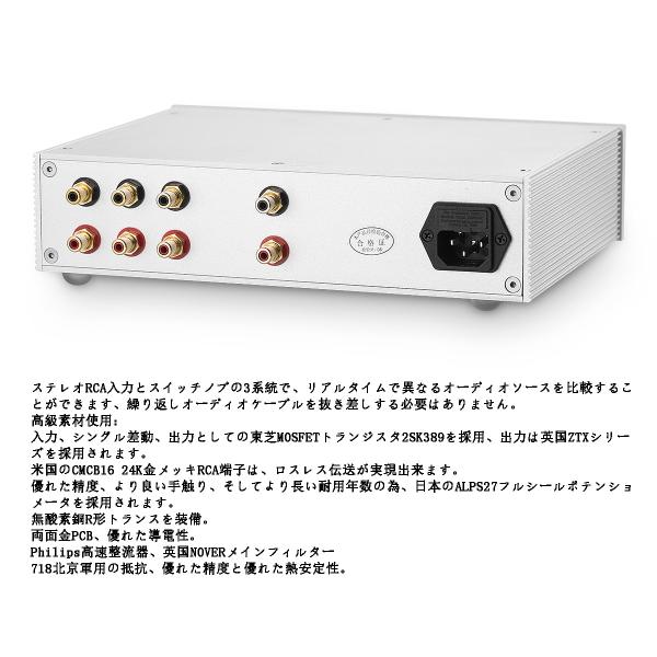 ステレオRCA入力とスイッチノブの3系統で、リアルタイムで異なるオーディオソースを比較することができます、繰り返しオーディオケーブルを抜き差しする必要はありません。