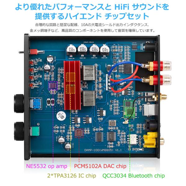 チップセット: QCC3034+PCM5102A+TPA3126+NE5532