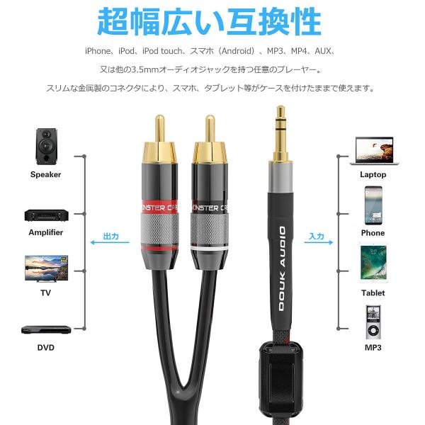互換性のあるデバイス:MP3、TV、DVD、コンピューター、iPad、タブレット、アンプ、スマートフォン、スピーカー、HDTVなど。
