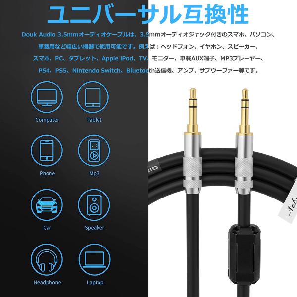 Nobsound Douk Audio 3.5mm オーディオケーブル ステレオ auxiliary AUX コード 金メッキ オス-オス 1M