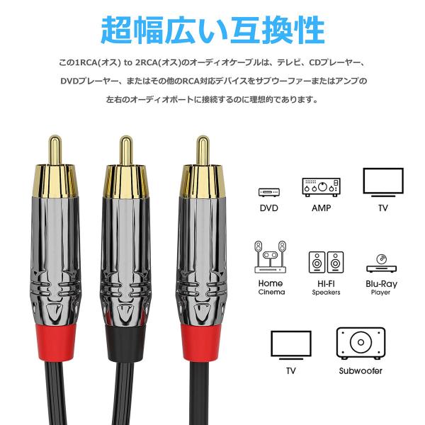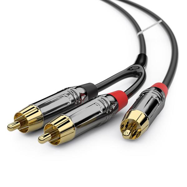 Nobsound Douk Audio OFC RCAケーブル 1 RCA to 2 RCA ステレオオーディオ変換ケーブル Y分配ケーブル 24K金メッキ 2M