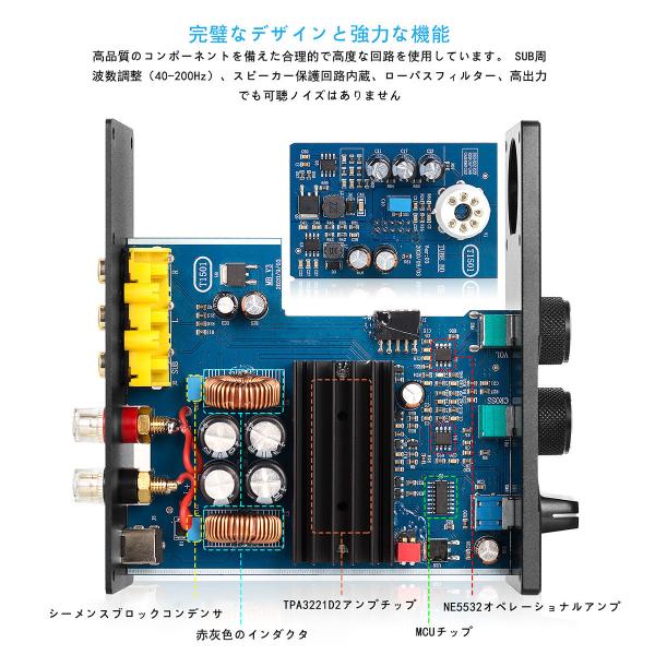 Nobsound TONE デジタルパワーアンプ: ミニBluetoothアンプ TPA3116搭載 50W×2出力 エンコーダーノブ付き ホームシアター/デスクTOP用 コンパクト設計