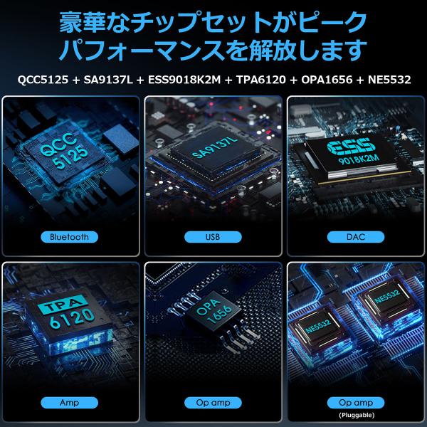 チップセット:QCC5125+SA9137L+ES9018K2M+TPA6120+OPA1656+NE5532(2PCS プラグイン可能)