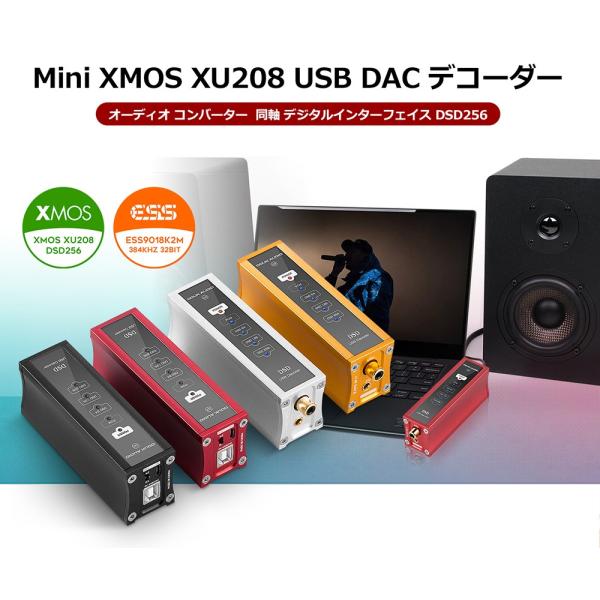 Mini XMOS XU208 USB DAC デコーダー オーディオ コンバーター 同軸 デジタルインターフェイス DSD256