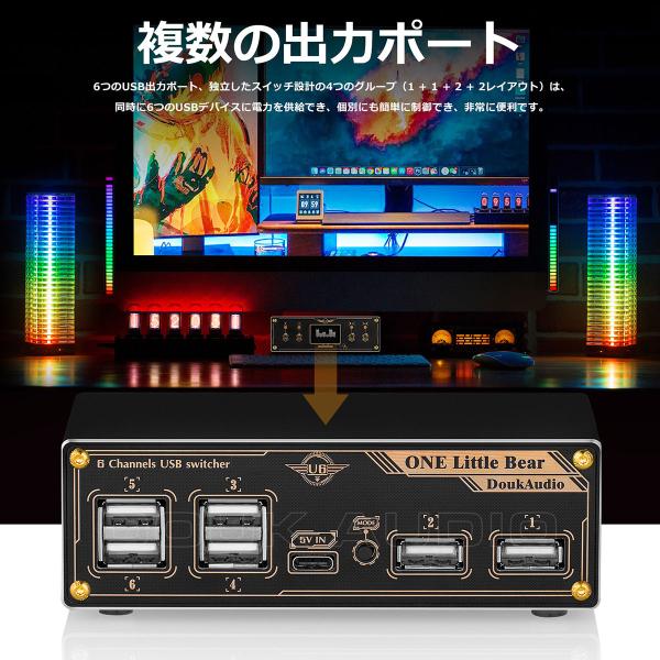 出力ポート数:4系統、合計6USBポート