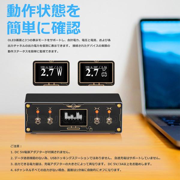 電圧計 USB 充電器付き レトロ 6ポート USB充電ステーション HUB パワースプリッター 25W