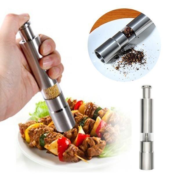 片手でワンプッシュ!ステンレスペッパーミル(ソルトミル) 必要な分だけ少量ずつ挽ける 水洗いOK 敬老の日 送料無料 3M◇ ワンハンドミル