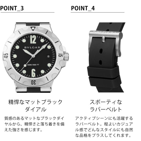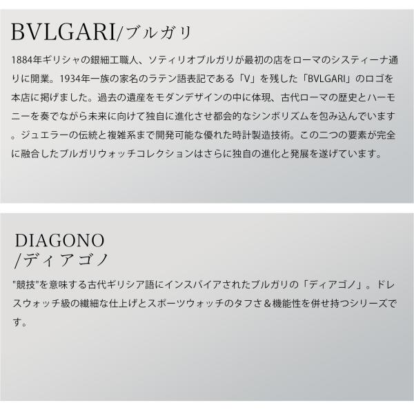 ブルガリ BVLGARI /ディアゴノと言えば最先端素材を時計に取り入れることで業界に大きな影響を与えた革新モデルと知られています。高い防水性に自社製ムーブメントを搭載したプロフェッショナルスクーバ。視認性が大変高くダイバーズウォッチとしての機能面はもちろん、ムーブメントにもこだわりを見せたブルガリ唯一のダイバーズシリーズです。