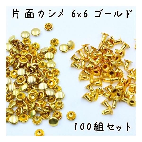 片面カシメ 6mm 6mm足 100組セット 全5色 並足 カシメ 小カシメ 金具 留め具 手芸 パーツ クラフト リメイク 加工 まとめ買い 卸売 ゴールド シルバー ブラック