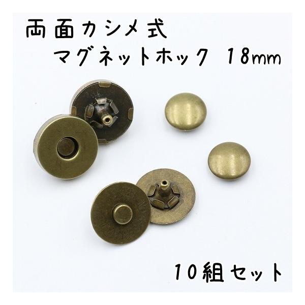両面カシメタイプの厚型マグネットホック 18mm アンティークゴールド 10組セットです。