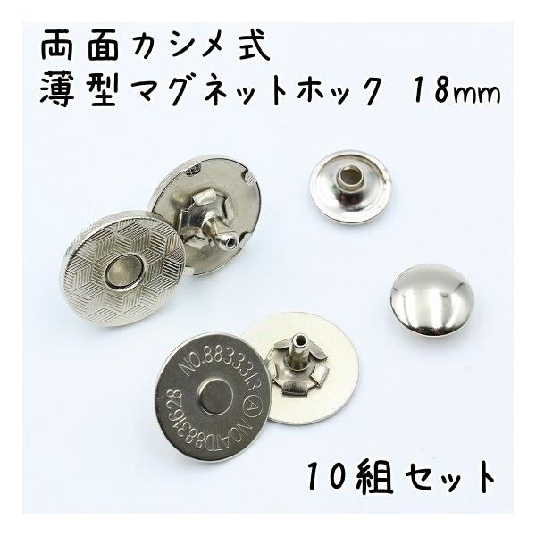 両面カシメ式 マグネットホック 18mm 10組セット 薄型 マグネットホックボタン ボタン 全4色 磁気ボタン 両面カシメ ハンドメイド クラフトDIY 手芸 まとめ買い
