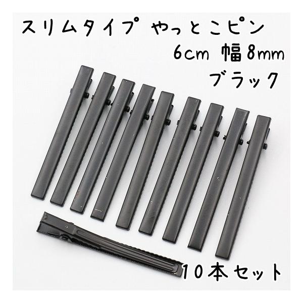 スリムやっとこピン ヘアクリップ 長さ6cm 幅6mm 10本セット 全3色(ライトゴールド・シルバー・ブラック)