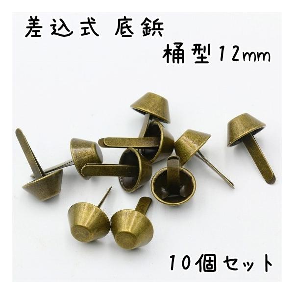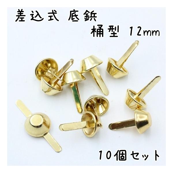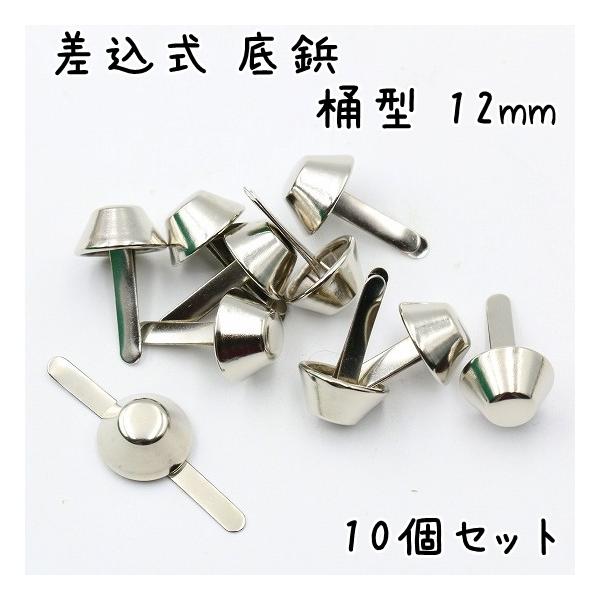 差込式 底鋲 10個 12mm 桶型 全5色 カバン バッグ 底 足 金具 台形 手芸 ハンドメイド 底びょう 割ピン リベット スタッズ ゴールド シルバー ブラック