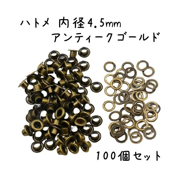 ハトメ 内径 4.5mm 100個 セット 全4色 ハトメ ハトメ金具 パーツ ベルト 革 穴 ゴールド シルバー ブラック 黒 卸 卸売り セット まとめ買い