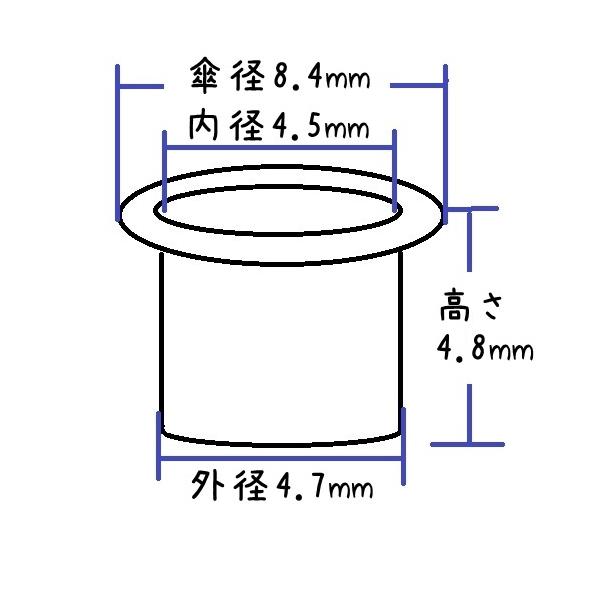 内径4.5mmの座金付 ハトメ 100個セットです。