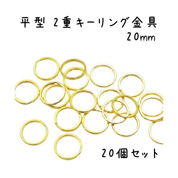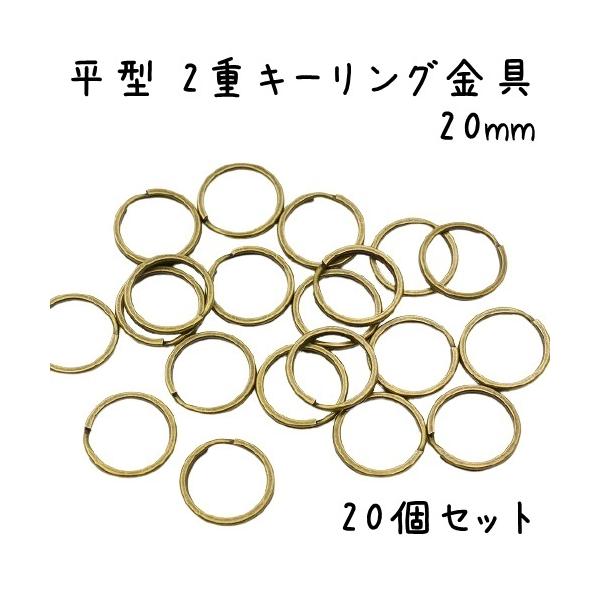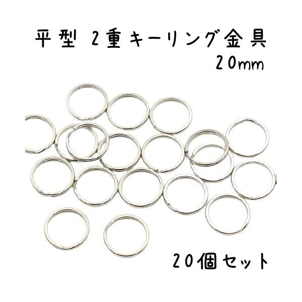 [20個セット] 平型 二重リング キーリング 金具 20mm Wリング 平型キーリング キーホルダー パーツ キーリング金具 アクセサリー ハンドメイド オススメ 全6色