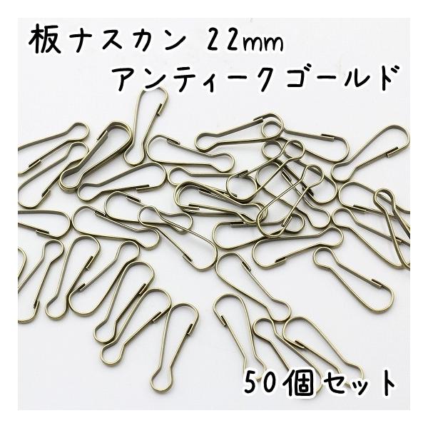 板ナスカン 22mm 50個セット 全5色 キーホルダー金具 板 なすかん クラフトパーツ アンティークゴールド シルバー ゴールド ライトゴールド ガンメタブラック
