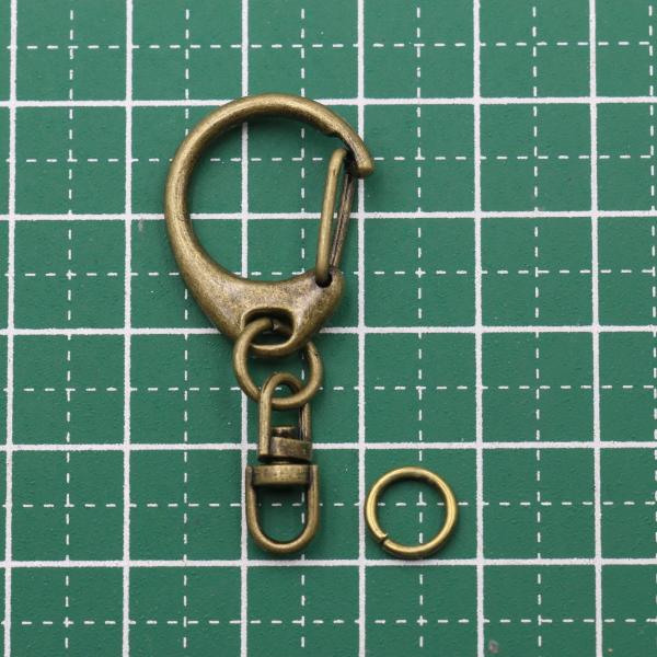 C型のキーホルダー金具 ワンタッチナスカン 回転カン 丸カン付です。