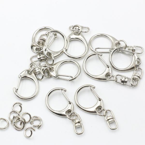 C型 キーホルダー金具 10個セット 全5色 ワンタッチナスカン 回転カン・丸カン付 C型ナスカン キーホルダー金具 キーホルダー ゴールド シルバー ブラック