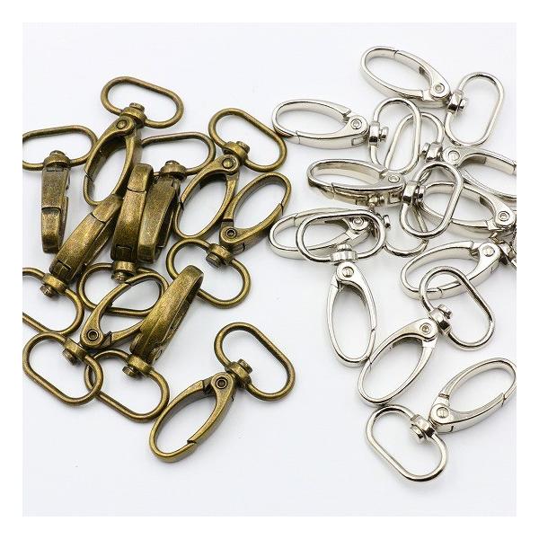 ナスカン 20mm 内径 金具 10個 セット 全2色 アンティークゴールド・シルバー 回転式 ロック カラビナ なすかん パーツ ハンドメイド 材料 手芸 レザークラフト